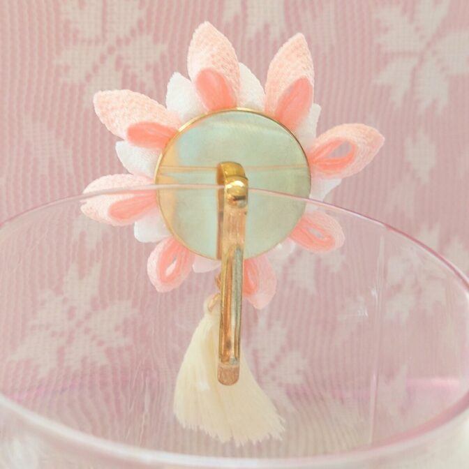 中心にあしらった小粒パールや、クリームカラーのタッセルもポイントとなっています。