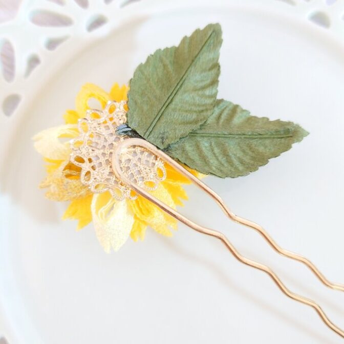 大輪のひまわりをイメージして、華やかなかんざしを作りました。